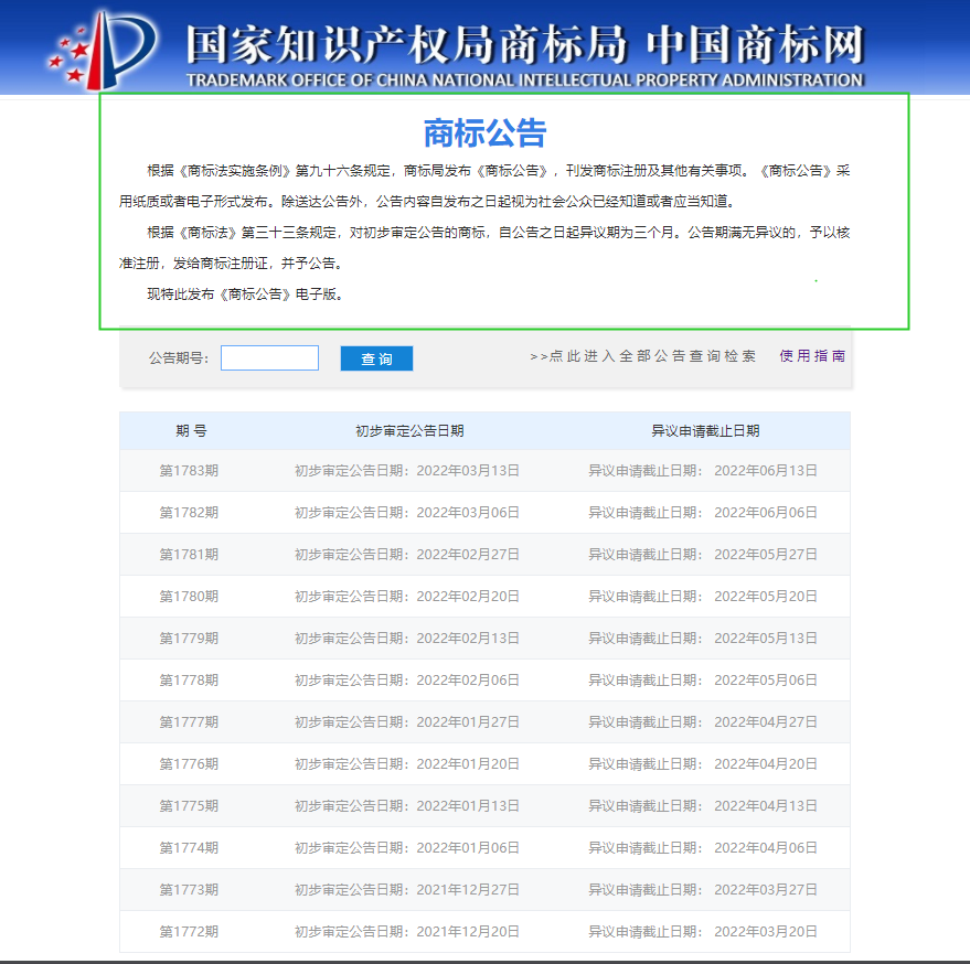 http://wsgg.sbj.cnipa.gov.cn:9080/tmann/annInfoView/homePage.html