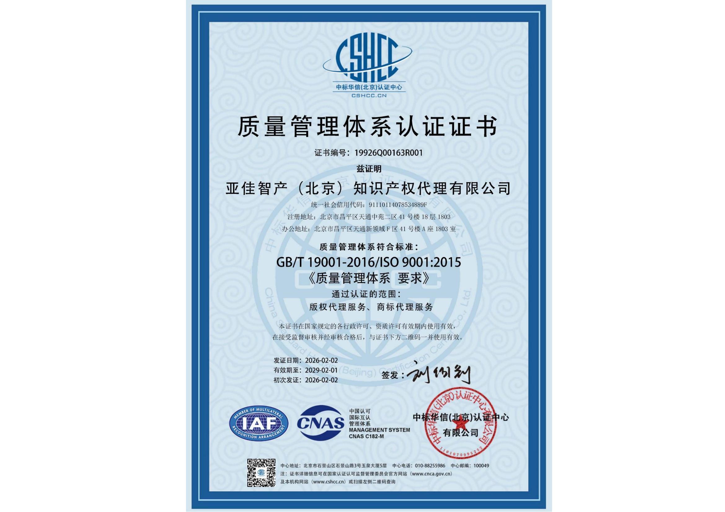 2013年9月18日 亚佳知识产权 (商标、版权) 成立于北京