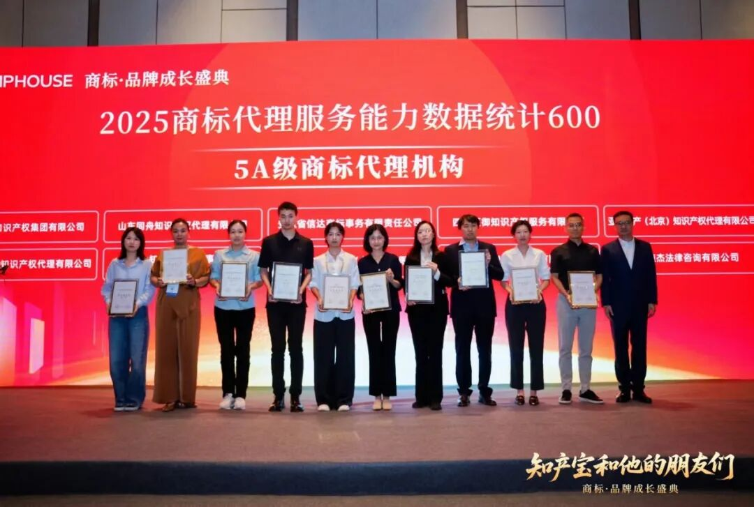 评选范围覆盖全国在国家知识产权局备案且年度申请量超50件的13000余家商标代理机构,最终遴选出代理行业顶尖水平的600强,其中仅有少数佼佼者荣获最高级别的“5A级商标代理机构”称号!